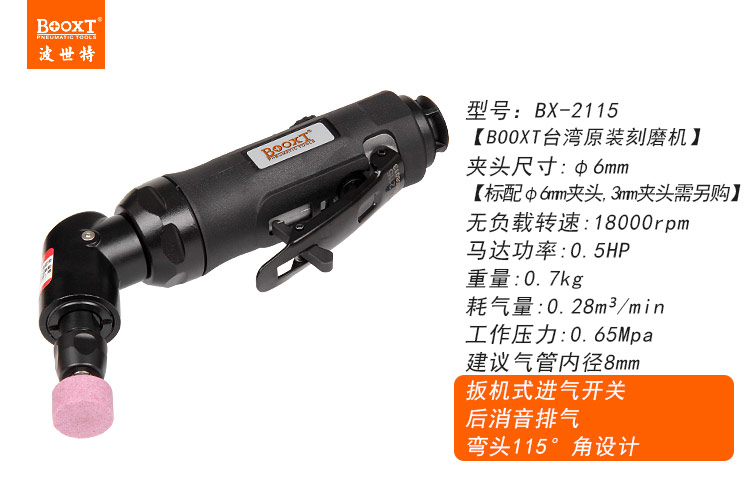 東莞市強(qiáng)勁五金工具有限公司提供臺(tái)灣BOOXT波世特品牌氣動(dòng)工具,115度彎頭刻磨機(jī)BX-2115廠家直銷,首件享特價(jià)。咨詢熱線:4008301980