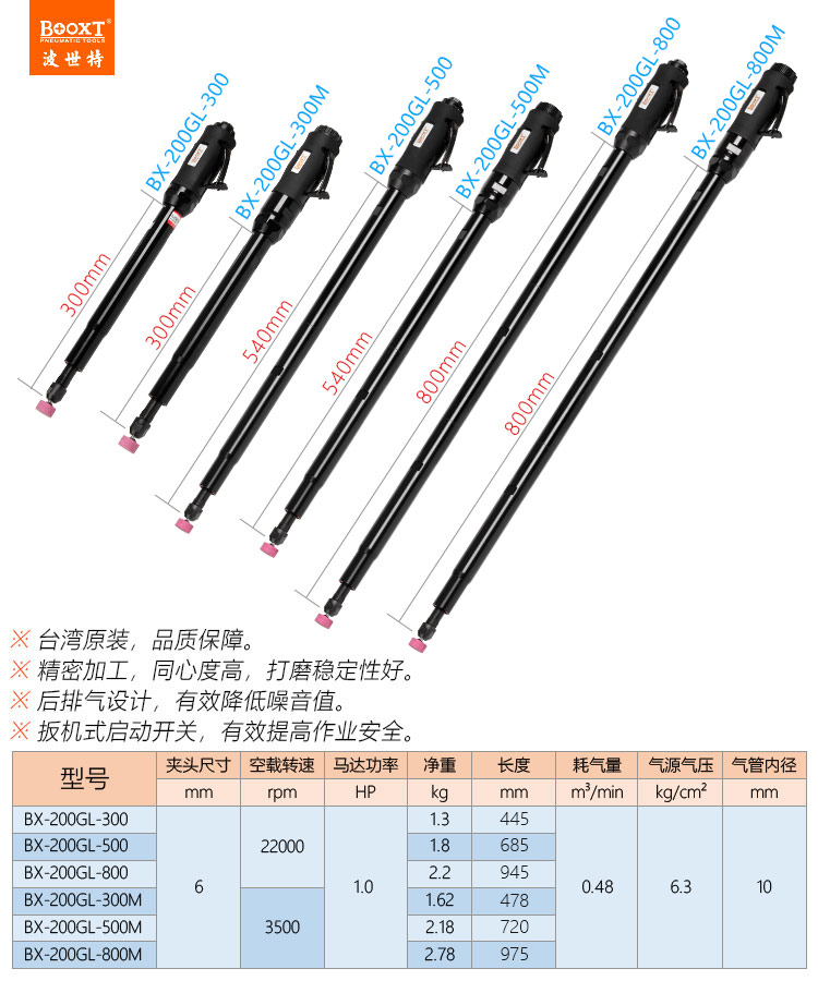 東莞市強(qiáng)勁五金工具有限公司提供臺灣BOOXT波世特品牌氣動工具,氣動直磨機(jī)BX-200GL-800M廠家直銷,首件享特價(jià)。咨詢熱線:4008301980