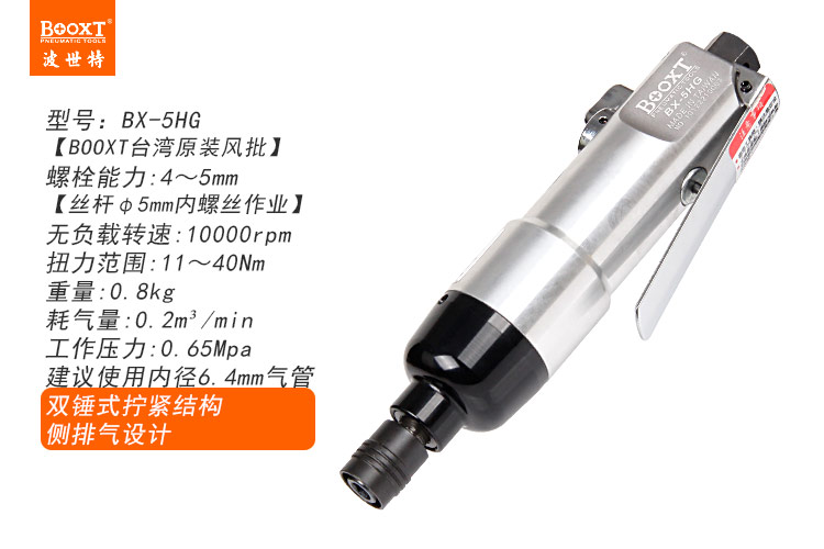 東莞市強勁五金工具有限公司提供臺灣BOOXT波世特品牌氣動工具,耐用氣動螺絲刀BX-5HG廠家直銷,首件享特價。咨詢熱線:4008301980
