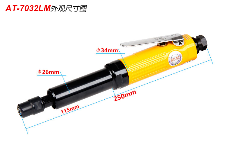 • 產(chǎn)品參數(shù): 夾頭能力:M3,M6 【標(biāo)配M6】 馬達(dá)功率:0.3HP 空載轉(zhuǎn)速:25000rpm 長(zhǎng)桿直徑:26mm 長(zhǎng)桿長(zhǎng)度:115mm 全 長(zhǎng):250mm 重 量 : 0.54kg 耗 氣 量:0.45m3/min 【專業(yè)型】