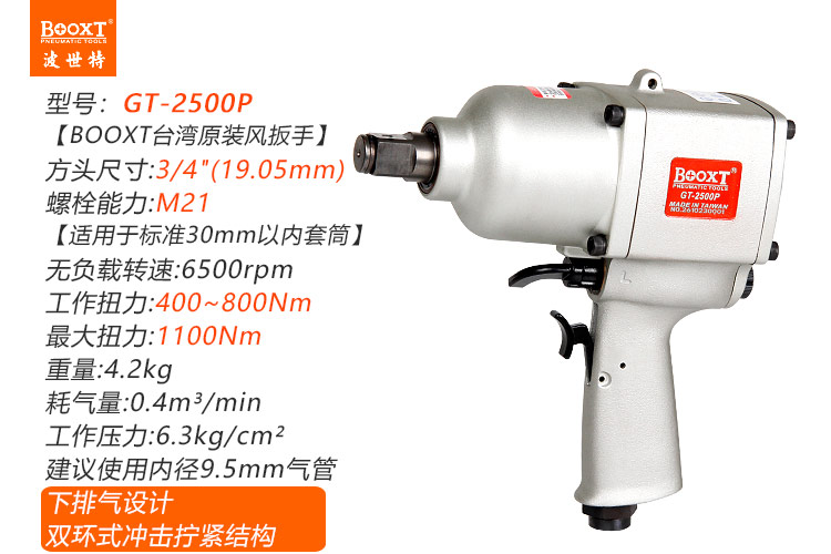 東莞市強(qiáng)勁五金工具有限公司提供臺灣BOOXT波世特品牌氣動工具,工業(yè)級中風(fēng)炮GT-2500P廠家直銷,首件享特價。咨詢熱線:4008301980
