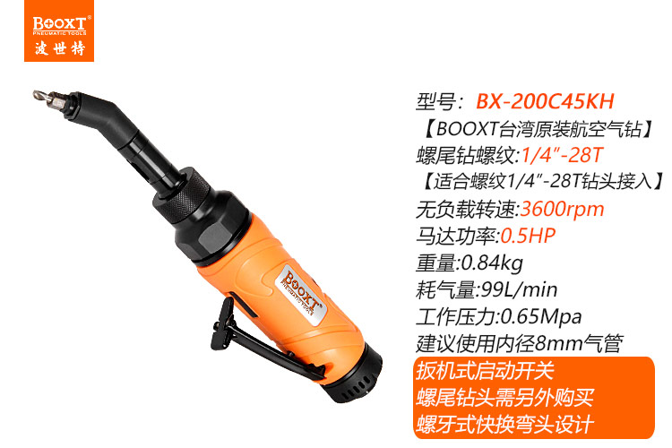 東莞市強(qiáng)勁五金工具有限公司提供臺(tái)灣BOOXT波世特品牌氣動(dòng)工具,偏角螺紋柄氣鉆BX-200C45KH廠家直銷(xiāo),首件享特價(jià)。咨詢(xún)熱線(xiàn):4008301980