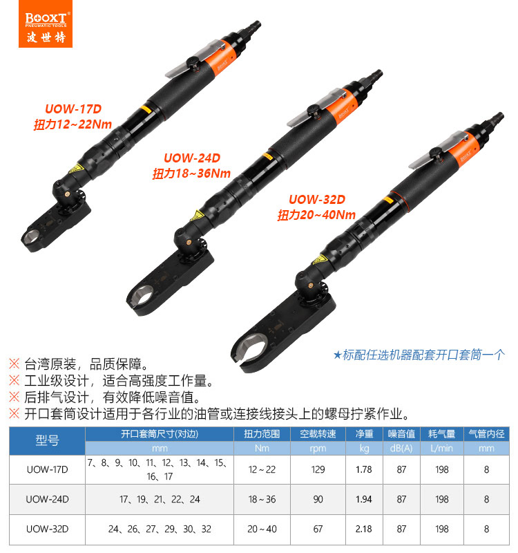 東莞市強(qiáng)勁五金工具有限公司提供臺(tái)灣BOOXT波世特品牌氣動(dòng)工具,大扭力開口氣動(dòng)扳手UOW-32D廠家直銷,首件享特價(jià)。咨詢熱線:4008301980