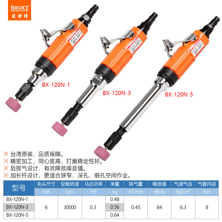 東莞市強勁五金工具有限公司提供臺灣BOOXT波世特品牌氣動工具,加長氣動刻磨機BX-120N-5廠家直銷,首件享特價。咨詢熱線:4008301980