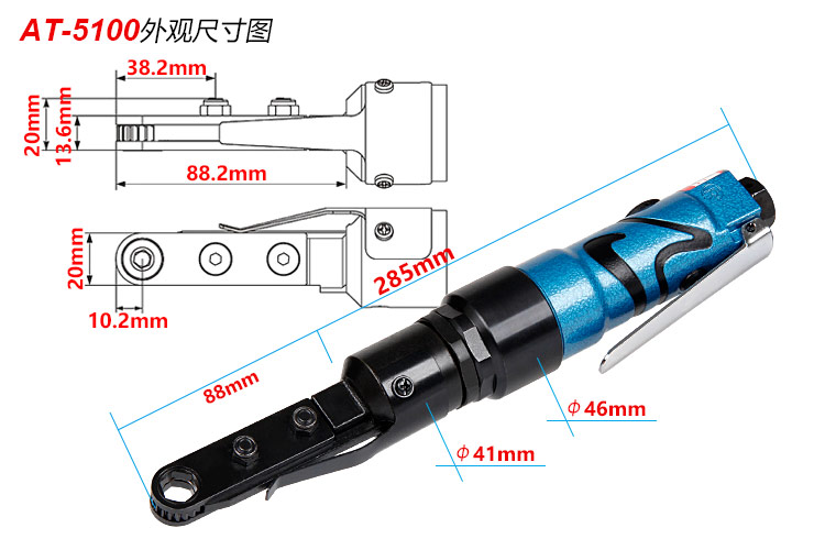 穿孔式氣動(dòng)棘輪扳手特點(diǎn):(重力壓鑄外殼,強(qiáng)度更高不變形,提高耐用度)